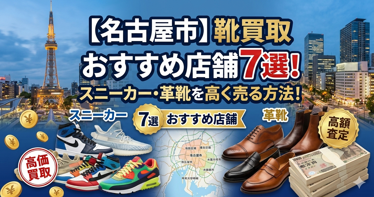 そこで本記事では、名古屋市で靴やスニーカーの買取に対応しているおすすめ店舗を厳選して紹介します。
